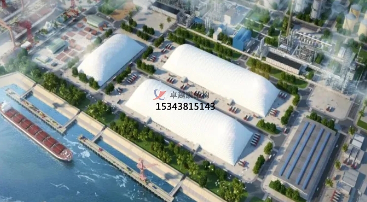 目前我國年吞吐量在1000萬噸以上的沿海港口和200萬噸以上的內(nèi)河港口占全國港口的1/3。而港口發(fā)展中所用到的煤炭、物料、煤矸石、煤堆、水泥白灰等生產(chǎn)原料造成的揚塵污染,給當?shù)厣鷳B(tài)及居住環(huán)境造成了嚴重破壞。而全封閉氣膜倉儲結(jié)構(gòu)在港口碼頭堆場中的應(yīng)用,不但能有效幫助港口企業(yè)實現(xiàn)環(huán)保與經(jīng)濟并存的雙贏局面,還將促成我國港口形成綠色生態(tài)新發(fā)展格局。