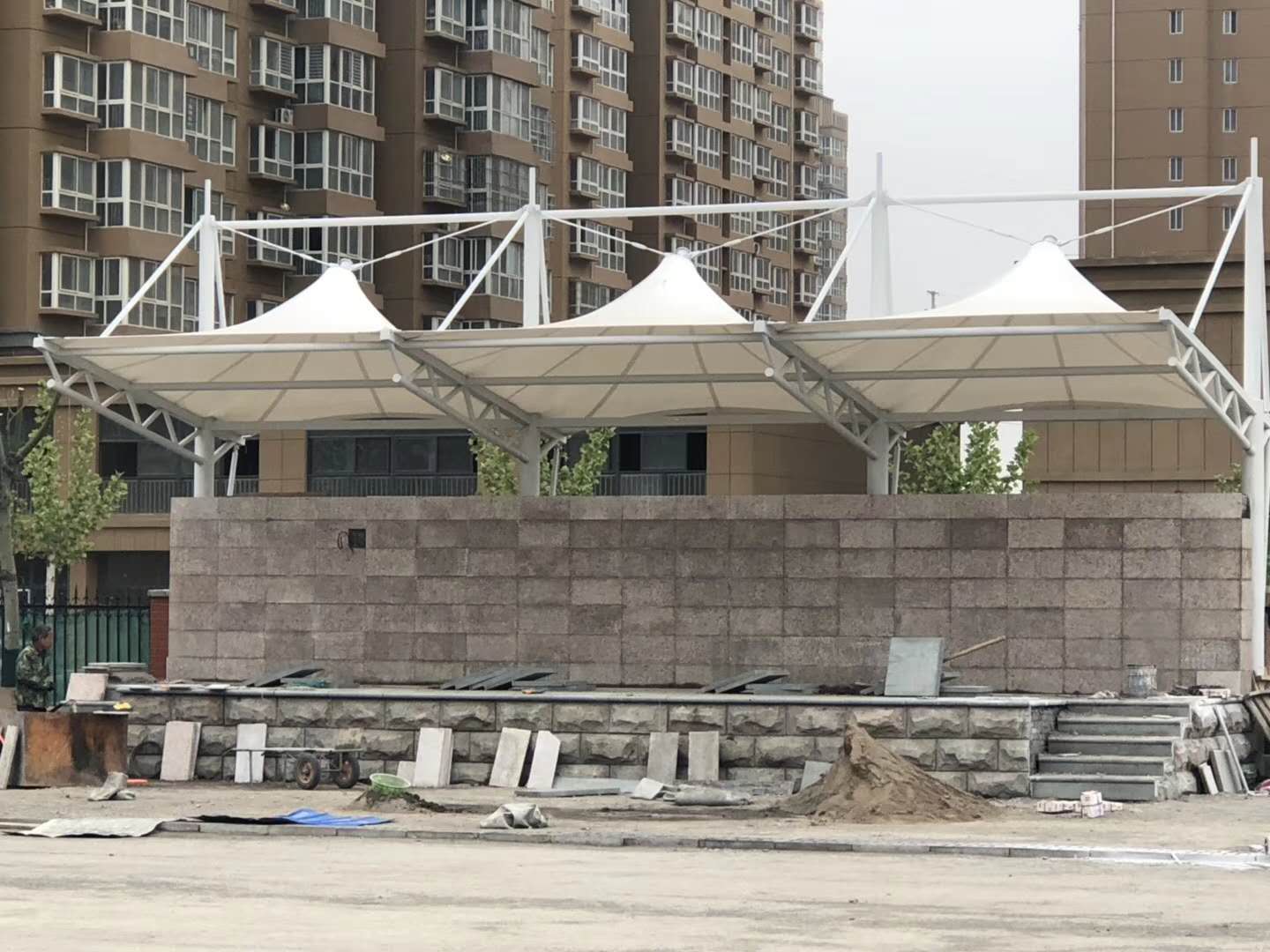 工程結(jié)構(gòu)形式:骨架式膜結(jié)構(gòu)看臺(tái),自然排水。
