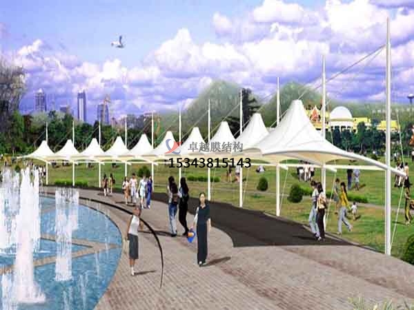 膜材料可濾除大部分紫外線,防止內(nèi)部物品褪色。其對自然光的透射率可達25%,透射光在結(jié)構(gòu)內(nèi)部產(chǎn)生均勻的漫射光,無陰影,無眩光,具有良好的顯色性,夜晚在周圍環(huán)境光和內(nèi)部照明的共同作用下,膜結(jié)構(gòu)表面發(fā)出自然柔和的光輝,令人陶醉。PTFE膜材和經(jīng)過特殊表面處理的PVC膜材具有很好的自潔性能,雨水會在其表面聚成水珠流下,使膜材表面得到自然清洗。一般膜結(jié)構(gòu)對于低于60Hz的低頻幾乎是透明的,對有特殊吸音要求的結(jié)構(gòu)可以采用具有FABRASORB裝置的膜結(jié)構(gòu),這種組合比玻璃具有更強的吸音效果。單層膜材料的保溫性能與磚墻相同,優(yōu)于玻璃。同其他材料的建筑一樣,膜建筑內(nèi)部也可以采用其他方式調(diào)節(jié)其內(nèi)部溫度。例如:內(nèi)部加掛保溫層,運用空調(diào)采暖設(shè)備等。