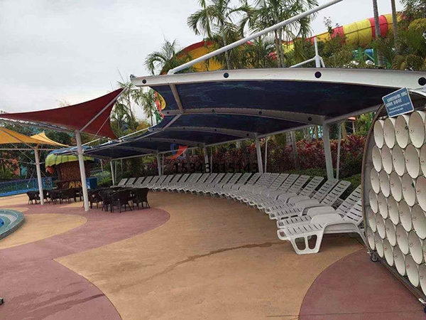 車棚沉穩(wěn)的深藍(lán)色薄膜結(jié)構(gòu),使得精致穩(wěn)重的共存,非常讓人放心。深藍(lán)色就像是陽光照耀下所有的陰霾。在膜結(jié)構(gòu)轎廂的設(shè)計中,假定深藍(lán)是主要顏色,可以帶來安全感。