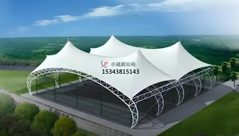 三 膜結(jié)構(gòu)雨棚的應(yīng)用領(lǐng)域:商業(yè)領(lǐng)域,交通領(lǐng)域,體育領(lǐng)域,景觀領(lǐng)域。商業(yè)領(lǐng)域,商場、購物中心、商業(yè)街等的入口、廣場、停車場等位置,可提供遮陽避雨的空間,同時增加空間利用率,其新穎的造型設(shè)計成為景觀亮點可吸引顧客,提升商業(yè)氛圍。交通領(lǐng)域,在機場、火車站的候車廳,高速公路服務(wù)區(qū)、收費站、公交站臺等地方,能為旅客提供舒適的候車環(huán)境。體育領(lǐng)域,大型體育館以及體育看臺常采用膜結(jié)構(gòu)雨棚,其大跨度特性可滿足視野寬闊無結(jié)構(gòu)遮擋的要求,且膜材透光性可使白天室內(nèi)達(dá)到和室外幾乎一樣的自然效果,體育館、體育場、游泳館等體育場館的入口、看臺、休息區(qū)等,可保護(hù)觀眾和運動員免受風(fēng)雨侵襲,增強場館的整體美觀度。景觀領(lǐng)域,公園、廣場、花園、景區(qū)等地方,作為景觀小品或休息設(shè)施,為人們提供休息、觀賞的空間,與自然環(huán)境相融合,增添景觀的現(xiàn)代感,膜結(jié)構(gòu)雨棚與周圍環(huán)境融為一體可創(chuàng)造出浪漫溫馨的空間,在夜間彩燈映射下形成絢麗繽紛的景觀。工業(yè)領(lǐng)域,膜結(jié)構(gòu)廠房具有結(jié)構(gòu)輕便、抗震性好等特點,廣泛應(yīng)用于各類工廠,也可用于一些倉庫、污水處理設(shè)施等的覆蓋。