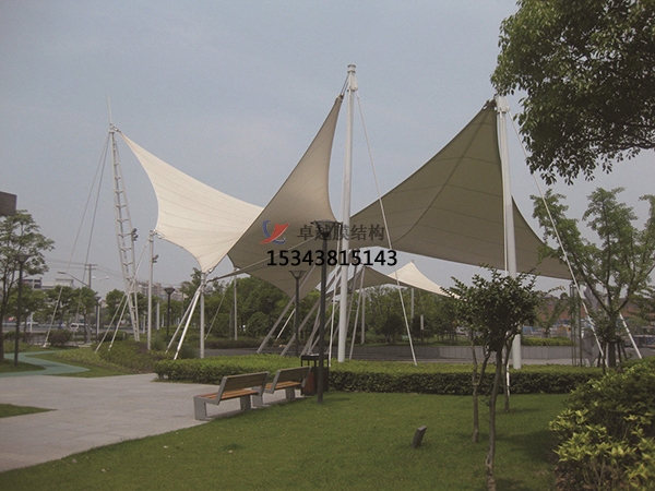 膜結構自身重量很輕,僅為鋼結構的1/5,混凝土結構的1/40,因此索膜結構對地震力有良好的適應性,而對風的作用較為敏感。此外雪荷載和活荷載的作用也在設計范圍之內。公園建筑選擇景觀小品膜結構,讓一層不變的綠色環(huán)境,搭建出一個又一個深入人心的膜結構建筑,景觀膜結構造型美觀,怎能不奪人眼球,吸引大眾注意力。
