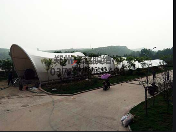 4、輕巧而漂亮的膜結構用于打開或半打開修建物的遮蓋屋蓋尤為適宜。近年來在足球、田徑等比賽的體育場中,越來越多的看臺挑蓬都選用膜結構。國外很大露天劇院的舞臺、博覽會的展覽館也都以膜作為頂蓋。在我國廣闊區(qū)域是農貿市場也可大力推廣膜結構。