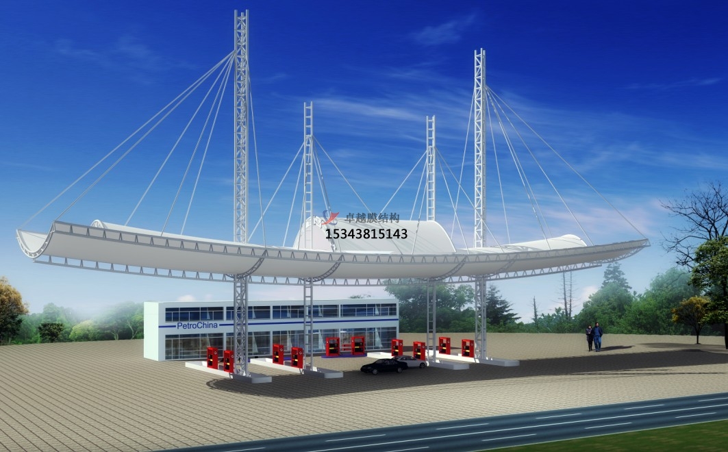 膜結構作為車棚、收費站、加油站碼頭、火車站、飛機場等更為常見,主要做遮風擋雨之用,高性價比是作為交通設施更主要的原因。膜結構的易拆卸、建造成本低、空間利用率高等優(yōu)勢,讓膜結構成為工業(yè)領域終更受歡迎的建筑。