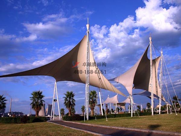 1、所謂膜結(jié)構(gòu)又叫張拉膜結(jié)構(gòu),就是由支撐架構(gòu)結(jié)合膜材所形成的建筑物或者構(gòu)筑物,如今比較流行的支撐架構(gòu)為鋼結(jié)構(gòu)或者符合材料結(jié)構(gòu),膜材通常用的有三種PVC膜材、PTFE膜材、ETFE膜材,與傳統(tǒng)建筑形式相比膜結(jié)構(gòu)的優(yōu)點(diǎn)非常顯著:造型藝術(shù)、環(huán)保節(jié)能、力學(xué)性能好、防火抗震、自潔能力強(qiáng)、工期短經(jīng)濟(jì)效益佳、應(yīng)用范圍廣等,使其無(wú)愧為本世紀(jì)更現(xiàn)代與更充滿(mǎn)前途的建筑形式之一。如果您想了解跟多有關(guān)于膜結(jié)構(gòu)方面的知識(shí)請(qǐng)關(guān)注鄭州卓越膜結(jié)構(gòu)公司, 我公司在膜結(jié)構(gòu)建筑方面已經(jīng)有10年的經(jīng)驗(yàn)了,并且有著專(zhuān)業(yè)的設(shè)計(jì)和施工團(tuán)隊(duì),可以滿(mǎn)足客戶(hù)的各種需求,;從設(shè)計(jì)、施工、加工、安裝為一體專(zhuān)業(yè)廠(chǎng)家。下面我給小伙伴們展示下卓越在吐魯番地區(qū)完成的一批膜結(jié)構(gòu)景觀(guān)經(jīng)典案例,卓越公司在吐魯番周邊完成了吐魯番經(jīng)濟(jì)開(kāi)發(fā)區(qū)膜結(jié)構(gòu)景觀(guān)、吐魯番騰達(dá)廣場(chǎng)膜結(jié)構(gòu)景觀(guān)小品、吐魯番火車(chē)站膜結(jié)構(gòu)景觀(guān)的設(shè)計(jì)施工,簡(jiǎn)介如下: