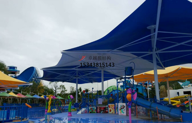 3:簡易拆卸,移動和可以更換性能,游樂園的建筑和其他項目建筑的很大不同是,游樂園需要定期或者不定期做一些改造或者調(diào)整,這樣游客才會重復來玩。膜結(jié)構恰好能滿足這一點,比如,同樣是一個休息亭,換個顏色,或者換個造型,只需要增加或者減少局部的鋼結(jié)構桿件,換一塊膜就可以搞定,傳統(tǒng)的結(jié)構是沒辦法實現(xiàn)的。