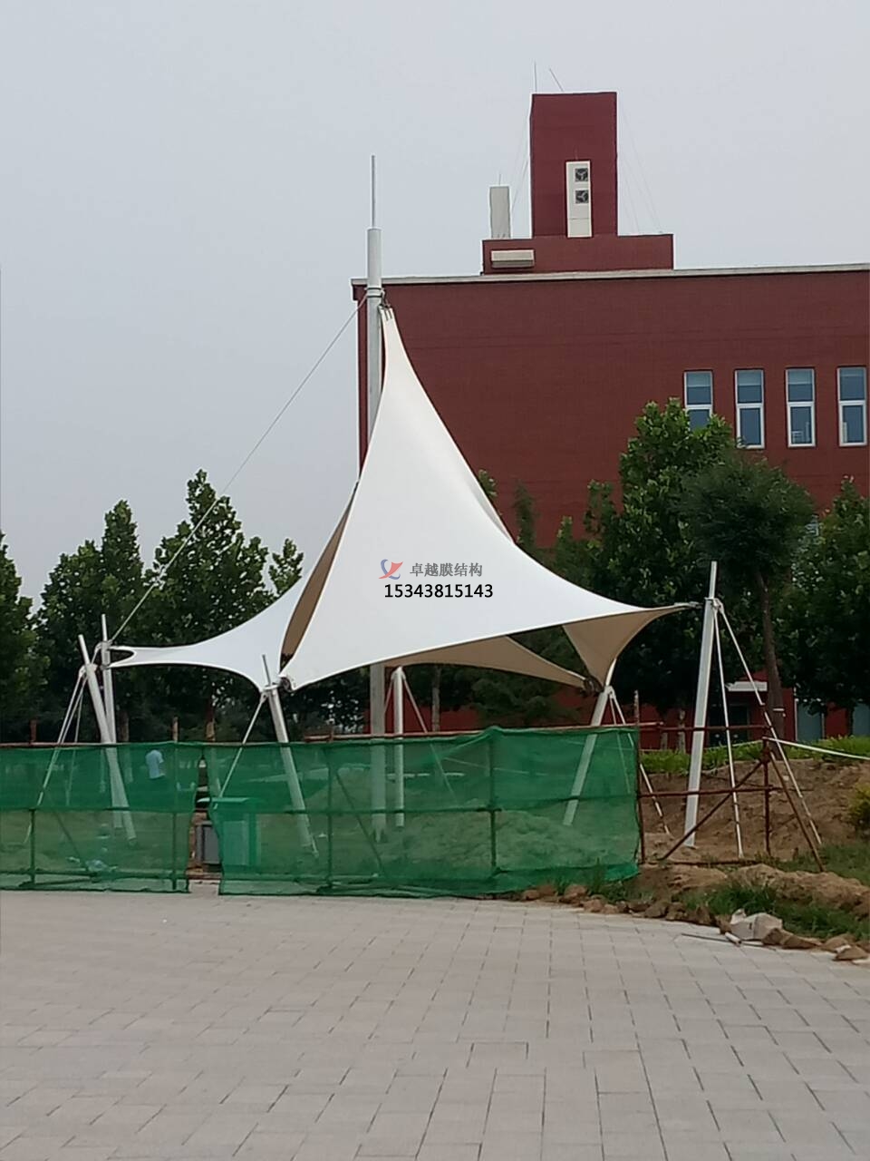 PVC膜材是一種經(jīng)濟(jì)實(shí)惠的膜材,由聚脂纖維織物加上PVC涂層(聚氯乙烯)而成。它的材質(zhì)柔軟,易于施工,但耐用年限較短,一般在5~8年。為了改善其耐候性,近年來已研發(fā)出在PVC涂層材的表面處理上做氟素系樹脂涂層的膜材