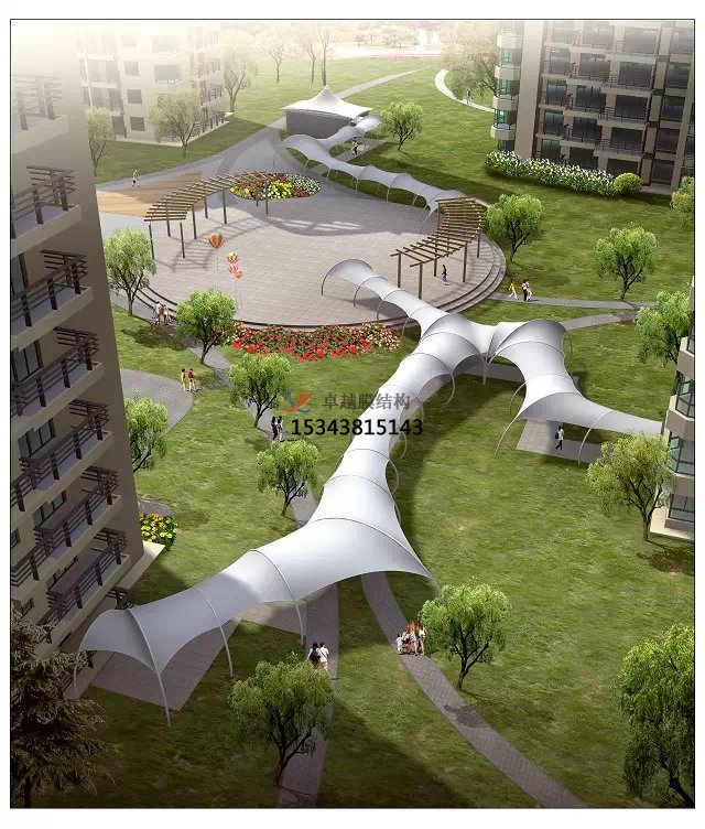 膜結(jié)構(gòu)景觀具有結(jié)構(gòu)牢固、外觀新穎,經(jīng)濟適用,適用壽命長,節(jié)能環(huán)保等優(yōu)點。深受廣大用戶的一致好評,卓越所有工程全部都是通過專業(yè)3D3S膜結(jié)構(gòu)軟件計算通過,結(jié)構(gòu)安全,質(zhì)量可靠。