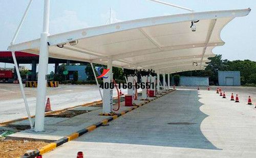 我們承接了該廠區(qū)的膜結(jié)構(gòu)充電站樁車棚項目。