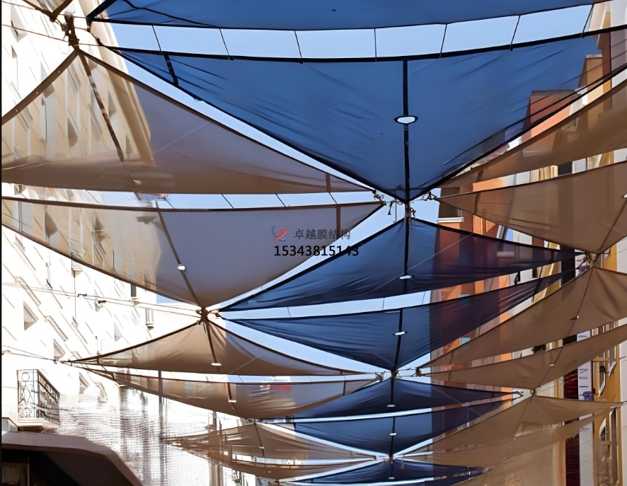 商業(yè)空間范疇:商業(yè)街區(qū)、購物中心的入口與中庭常常引入景觀膜結構。獨特的膜結構造型可迅速吸引消費者注意力,成為商業(yè)區(qū)域的標志性景觀,起到良好的廣告宣傳與引流作用。在商場內部,膜結構裝飾元素的運用,如懸掛式膜結構燈具、膜結構展示架等,為購物空間增添了時尚感與趣味性,提升了消費者的購物體驗。在一些主題樂園中,膜結構更是打造出奇幻的游樂場景,從造型各異的游樂設施遮陽棚到充滿童話色彩的主題建筑外罩,膜結構以其豐富的表現(xiàn)力,為游客帶來沉浸式的游樂體驗。