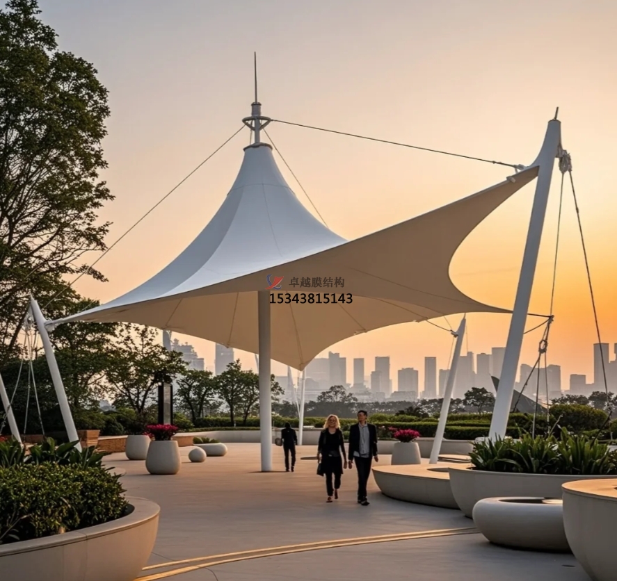 在現(xiàn)代景觀設計的多元舞臺上,景觀膜結構宛如一顆璀璨新星,以其獨特的魅力與卓越的性能,重塑著城市與自然的空間形態(tài),為人們帶來耳目一新的視覺體驗與實用功能。它打破傳統(tǒng)建筑結構的束縛,將藝術美學與工程技術完美融合,成為現(xiàn)代景觀中一道靈動且富有生命力的風景線。