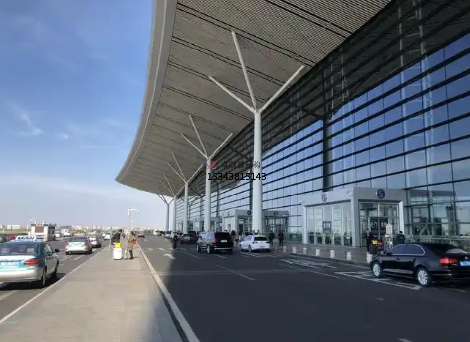 以鋼索、梭形柱為支撐體系,結(jié)合張拉式或脊谷式設(shè)計(jì),實(shí)現(xiàn)無(wú)柱大空間覆蓋(如岳陽(yáng)三荷機(jī)場(chǎng)單跨達(dá)86米)。