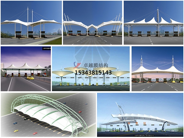 基本概念:城市的交通樞紐是城市命脈的關(guān)鍵性建筑,使用功能要求建筑物各組成單元的標(biāo)志明確。因而近來(lái)年,越來(lái)越多收費(fèi)站采用膜結(jié)構(gòu)。建筑膜材料的使用壽命為25年以上。在使用期間,在雪或風(fēng)荷載作用下均能保持材料的力學(xué)形態(tài)穩(wěn)定不變。建成於1973年的美國(guó)加州La Verne大學(xué)的學(xué)生活動(dòng)中心是已有23年歷史的張拉膜結(jié)構(gòu)建筑.跟蹤測(cè)試與材料的加載與加速氣候變化的試驗(yàn),證明它的膜材料的力學(xué)性能與化學(xué)穩(wěn)定性指標(biāo)下降了20%至30%,但仍可正常使用。膜的表層光滑,具有彈性,大氣中的灰塵、化學(xué)物質(zhì)的微粒極難附著與滲透,經(jīng)雨水的沖刷建筑膜可恢復(fù)其原有的清潔面層與透光性。