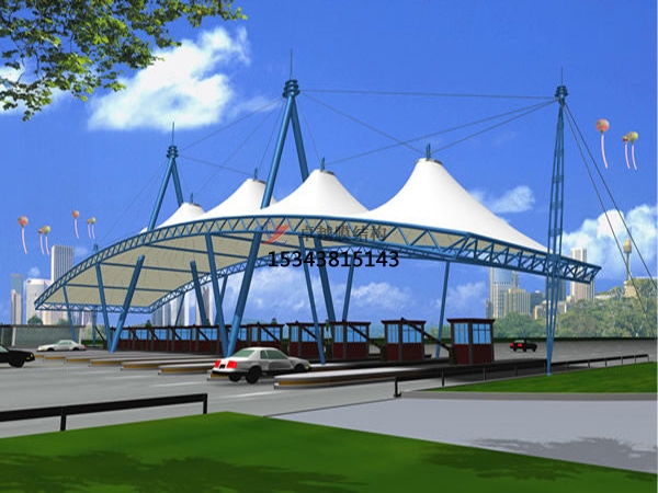 一、造型獨特,辨識度高,由于膜材重量輕,適合收費站這種大跨度的建筑,而且是采用張力結(jié)構(gòu)所以在造型設(shè)計上具有很大的優(yōu)勢,可以實現(xiàn)非常具有藝術(shù)氣息的造型。