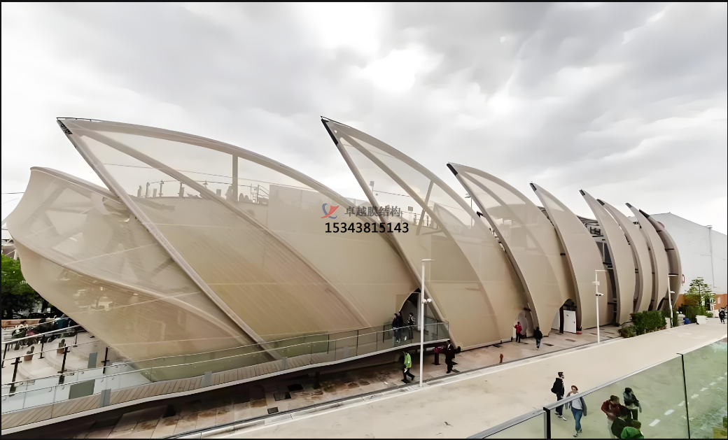 ?。汗珗@中的休息亭、花架、遮陽廊等景觀小品,使用 PTFE 網(wǎng)格覆膜進(jìn)行覆蓋,可與周圍的自然景觀相融合,形成獨(dú)特的景觀效果,為游客提供舒適的休息和觀賞空間。