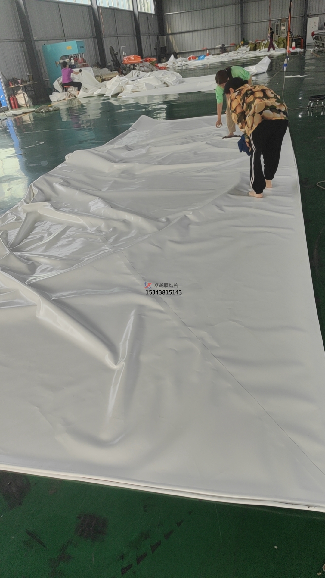 通常,膜面的加工制作包含以下工序:(1)準(zhǔn)備工作, 包括技術(shù)準(zhǔn)備、場(chǎng)地及設(shè)備準(zhǔn)備、膜材料進(jìn)場(chǎng)檢測(cè)等;(2)放樣、排版與下料;(3)熱合試驗(yàn);(4)熱合加工;(5)邊角處理;(6)清洗、包裝。
