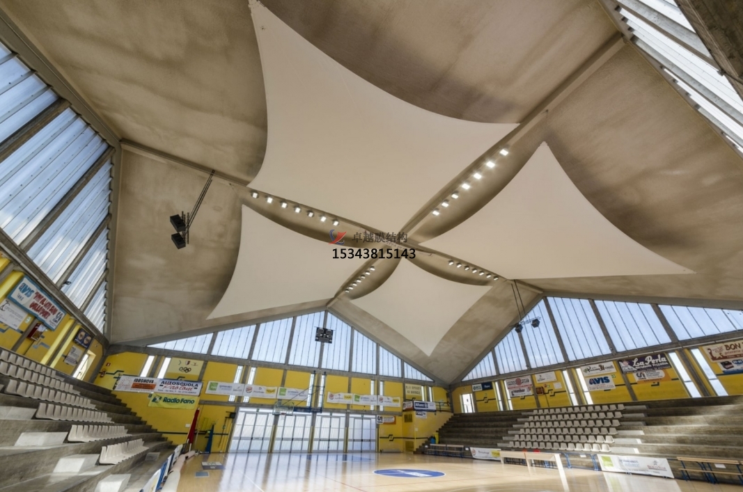 此外,PTFE膜結(jié)構(gòu)的薄膜具有一定的透光性,能夠有效利用自然光線,降低室內(nèi)照明能耗,遮擋紫外線和紅外線,減少太陽輻射對建筑內(nèi)部的熱負(fù)荷,實現(xiàn)能源的節(jié)約和環(huán)境的保護(hù);且PTFE膜結(jié)構(gòu)能夠通過不同的張拉和固定方式,創(chuàng)造出各種形態(tài)的建筑設(shè)計。它可以形成曲線、弧線、折線等多樣化的形狀,滿足建筑師對于獨特外觀和創(chuàng)新設(shè)計的需求。