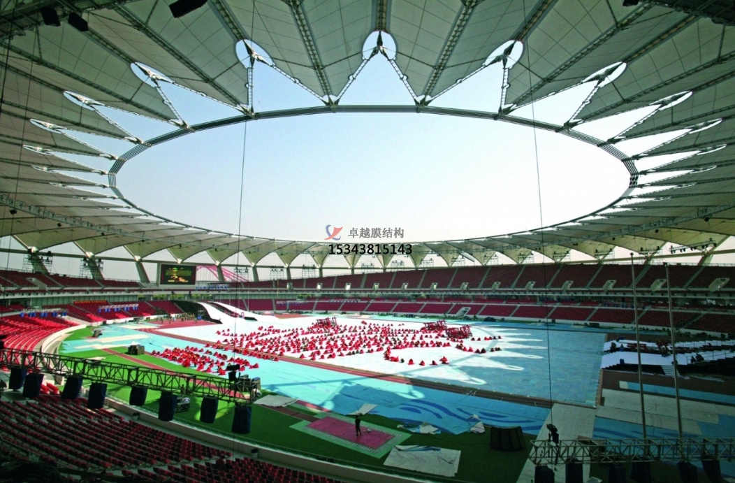 膜材柔軟,可塑性強,可以被拉伸成為各種動態(tài)感強的形狀,配合膜結構可以實現各種突破傳統(tǒng)模式的造型,豐富多樣,極具現代美。還可以創(chuàng)造大面積無柱覆蓋的空間。