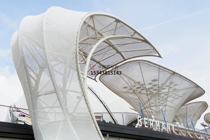 遮陽設(shè)施:在公園、廣場(chǎng)、酒店庭院等場(chǎng)所,PTFE 網(wǎng)格膜常被用于搭建遮陽棚、遮陽傘等設(shè)施。其良好的遮陽效果和耐候性,能為人們提供舒適的戶外休息空間,同時(shí)其可定制的造型也能與周圍環(huán)境相融合,成為景觀的一部分。