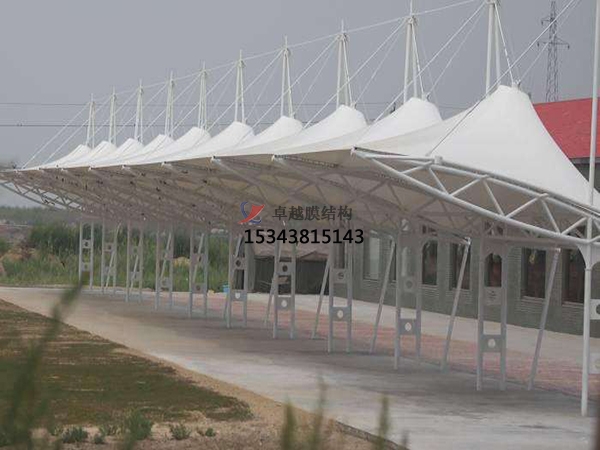 很好的先選材方面:目前國(guó)內(nèi)市場(chǎng)上停車棚已經(jīng)普遍用膜結(jié)構(gòu),簡(jiǎn)單說(shuō)來(lái)膜結(jié)構(gòu)停車棚具有很多優(yōu)點(diǎn)如:造型新穎、施工速度快、自潔性好、自重輕跨度大、防火抗震能力強(qiáng)、使用壽命長(zhǎng),相比較彩鋼瓦/陽(yáng)光板停車棚來(lái)講,很好的先要選膜結(jié)構(gòu)。