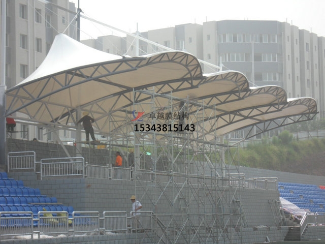膜結(jié)構(gòu)看臺(tái)可以根據(jù)不同的需求和場(chǎng)景進(jìn)行定制,具有很強(qiáng)的適應(yīng)性和靈活性。在聲學(xué)環(huán)境改善方面,膜結(jié)構(gòu)也有著出色的表現(xiàn)。其表面材質(zhì)和造型能夠?qū)β曇暨M(jìn)行有效的反射和吸收,減少噪音和回聲的干擾。無(wú)論是激情澎湃的體育賽事吶喊聲,還是精彩紛呈的文藝表演音樂(lè)聲,都能在膜結(jié)構(gòu)看臺(tái)的優(yōu)化下更加清晰地傳遞到觀眾耳中,為觀眾帶來(lái)優(yōu)質(zhì)的聽(tīng)覺(jué)享受。
