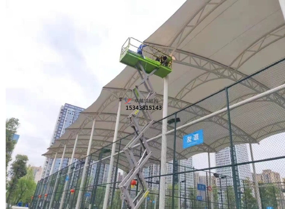 膜結(jié)構(gòu)材料具有較好的耐久性和自潔性。一般情況下,只需要定期進(jìn)行簡(jiǎn)單的清潔和檢查,不需要像傳統(tǒng)建筑結(jié)構(gòu)那樣頻繁地進(jìn)行大規(guī)模的維修和保養(yǎng)。選擇具有自潔性的膜材,表面的自潔涂層可以在雨水的沖刷下自動(dòng)清潔灰塵和污漬,大大降低了維護(hù)成本。
