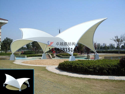 膜材料可濾除大部分紫外線,防止內(nèi)部物品褪色。其對自然光的透射率可達25%,透射光在結(jié)構內(nèi)部產(chǎn)生均勻的漫射光,無陰影,無眩光,具有良好的顯色性,夜晚在周圍環(huán)境光和內(nèi)部照明的共同作用下,膜結(jié)構景觀表面發(fā)出自然柔和的光輝。所以膜結(jié)構景觀具備光學性能。
