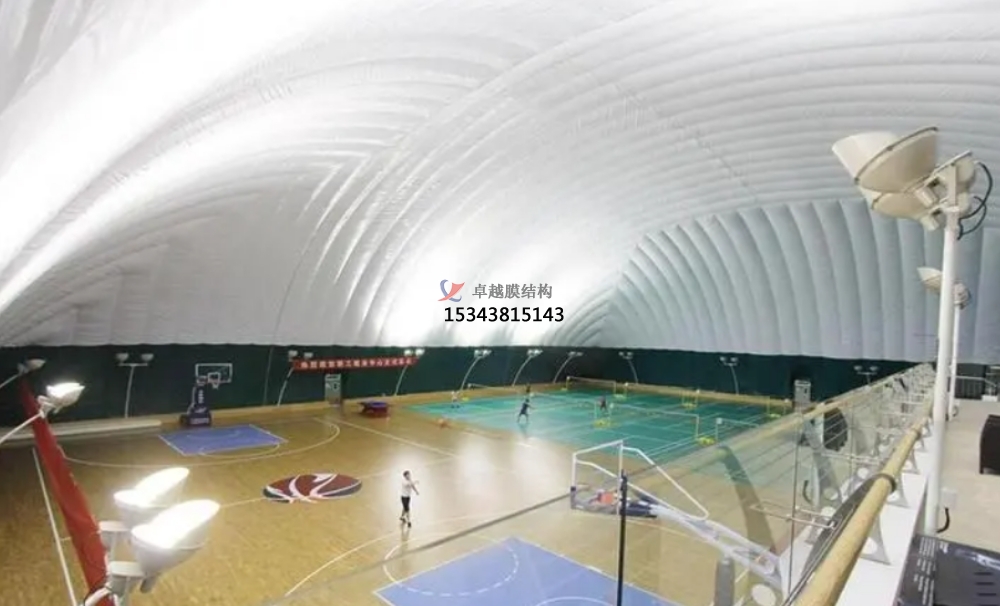 充氣膜結構籃球場:以特別建筑膜材為外殼,經(jīng)過智能化機電設備在內部供給正壓支撐氣膜。具有跨度大、外觀優(yōu)美、隔熱環(huán)保、工期短等特點,為籃球運動供給了全新的空間體驗。