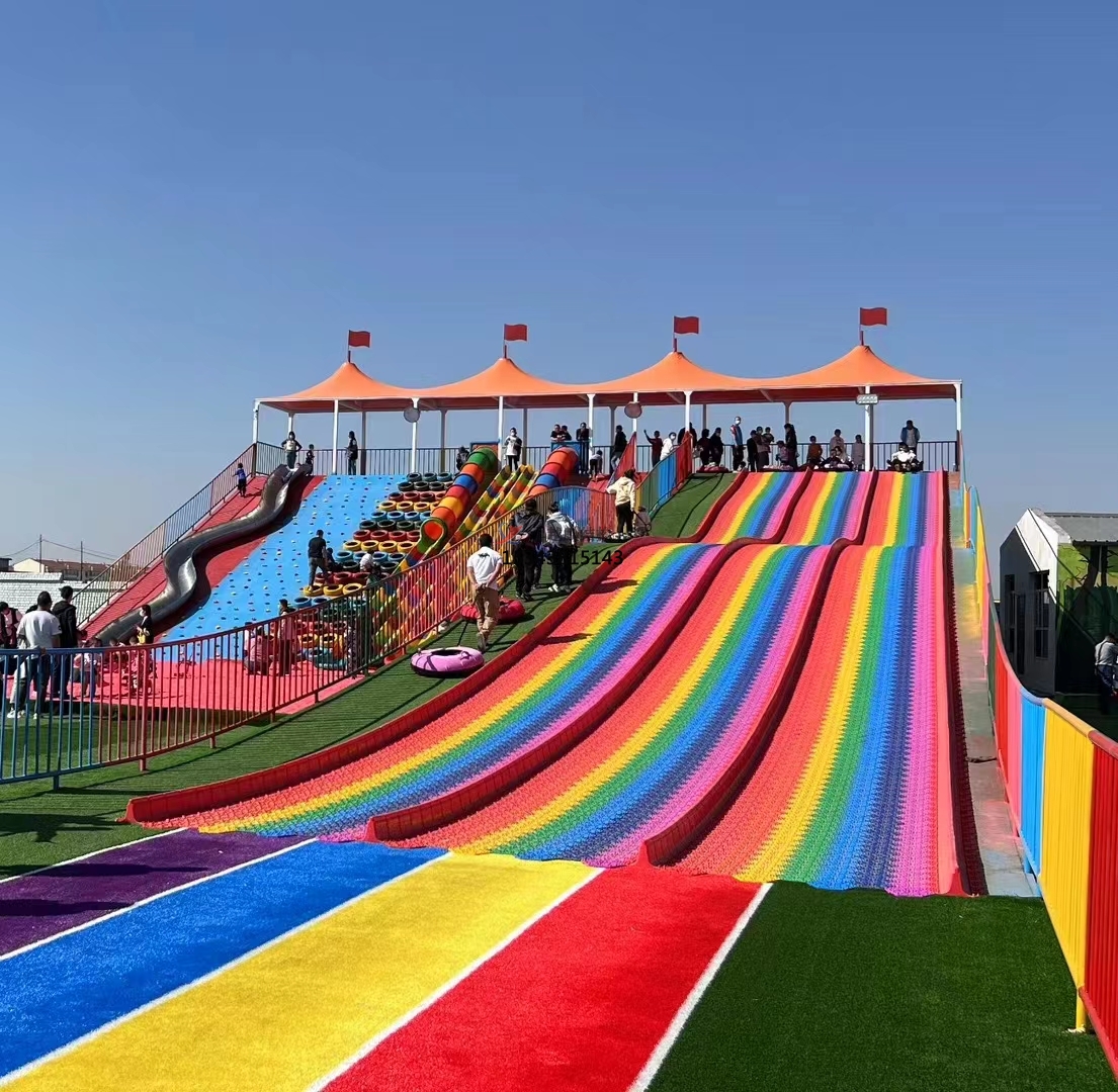 石家莊兒童樂園彩虹滑道遮陽棚的生產(chǎn)涉及到多個環(huán)節(jié),包括設計、材料選擇、制造和安裝等。以下是一個簡要的概述: