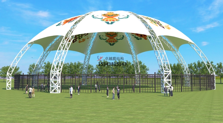 別看膜結(jié)構(gòu)看似輕盈柔弱,實(shí)際上它卻擁有著出色的力學(xué)性能。它能夠承受一定程度的風(fēng)雪荷載、風(fēng)荷載等自然外力,并且具有良好的自潔性,經(jīng)過(guò)特殊處理的膜材表面能夠在雨水的沖刷下自動(dòng)清潔灰塵和污漬,保持外觀(guān)的整潔美觀(guān)。此外,膜材還具備較好的防火、防腐、耐老化等性能,確保了景觀(guān)棚在長(zhǎng)期使用過(guò)程中的穩(wěn)定性和安全性。