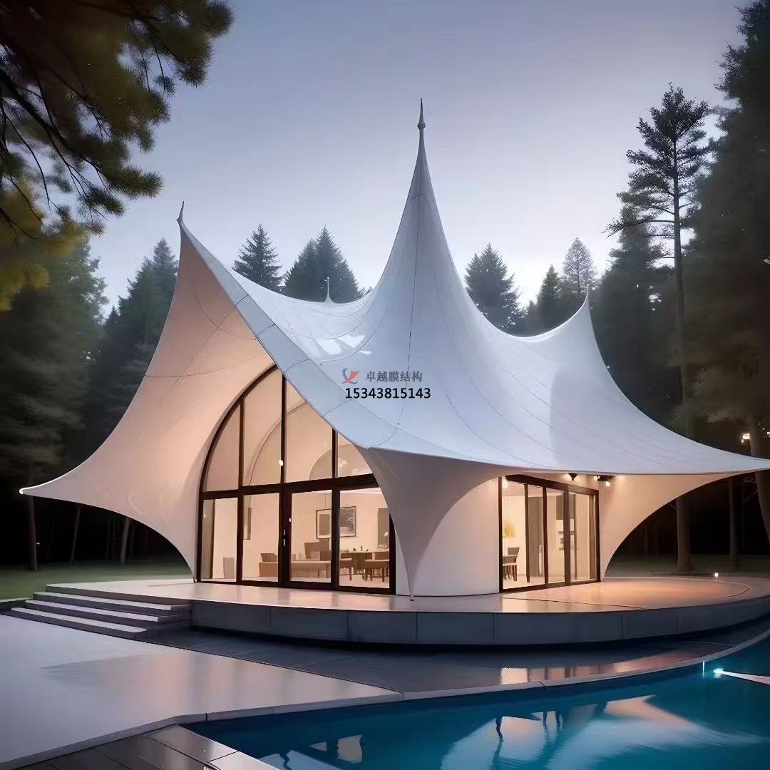 山區(qū)景觀中,膜結(jié)構(gòu)與山體輪廓契合無(wú)間。登山步道休息亭采用與山勢(shì)呼應(yīng)的造型,如順山勢(shì)起伏的波浪形或類山峰輪廓的三角形,仿若自然生長(zhǎng)于山體之中。膜材顏色選取與巖石、植被相近色調(diào),強(qiáng)化與自然景觀協(xié)調(diào)性。海濱景觀里,膜結(jié)構(gòu)與大海沙灘相互映襯。海邊沙灘浴場(chǎng)遮陽(yáng)棚以通透膜材構(gòu)建,人們遮陽(yáng)同時(shí)飽覽海景,輕盈造型與海浪動(dòng)態(tài)呼應(yīng),海風(fēng)吹拂下?lián)u曳生韻,成為海濱景觀重要組成部分。