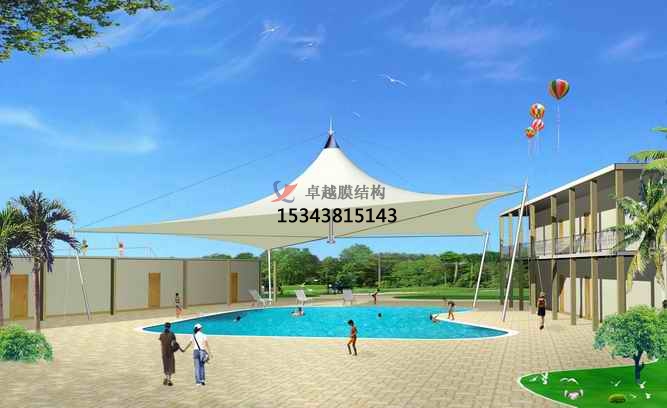 以膜材、鋼索及支柱構(gòu)成,利用鋼索與支柱在膜材中導(dǎo)入張力以達(dá)安定的形式。除了可實(shí)踐具有創(chuàng)意、創(chuàng)新且美觀的造型外也是更能展現(xiàn)膜結(jié)構(gòu)精神的構(gòu)造形式。近年來,大型跨距空間也多采用以鋼索與壓縮材料構(gòu)成鋼索網(wǎng)來支撐上部膜材的形式。其施工精度要求高,結(jié)構(gòu)性能強(qiáng),且具豐富的表現(xiàn)力,所以造價(jià)略高于骨架式膜結(jié)構(gòu)。