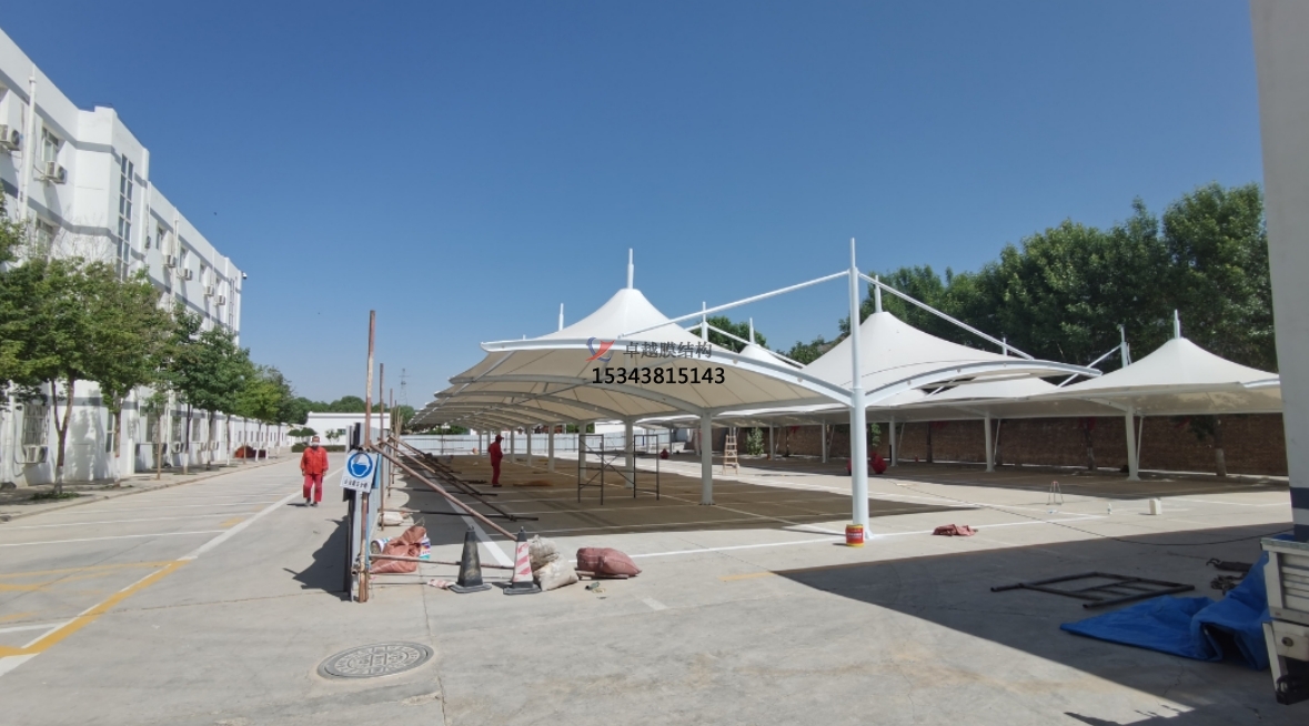 膜結(jié)構(gòu)停車(chē)棚的獨(dú)特造型和美觀(guān)性能夠很好地滿(mǎn)足這一需求,為游客的車(chē)輛提供保護(hù)的同時(shí),不破壞景區(qū)的整體景觀(guān)。