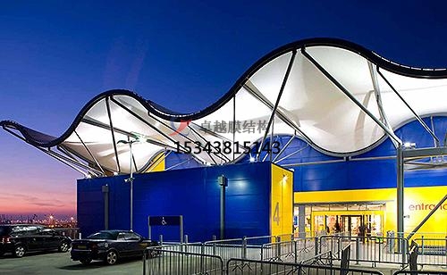 膜結(jié)構(gòu)景觀停車棚除前面所述外, 膜結(jié)構(gòu)景觀與其它結(jié)構(gòu)配合發(fā)展的空間很大, 會(huì)使建筑結(jié)構(gòu)形式變化更多、更新。膜結(jié)構(gòu)景觀需要大量迭代計(jì)算, 而且要考慮非線性因素, 只有隨著計(jì)算機(jī)才能完成。它是一種全新的建筑結(jié)構(gòu)形式, 它的結(jié)構(gòu)形式的美蘊(yùn)含著技術(shù)和藝術(shù)美。
