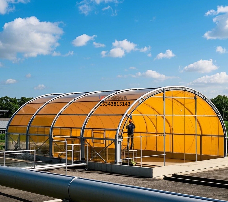 在城市生活垃圾中轉(zhuǎn)站中,膜結(jié)構(gòu)罩棚應(yīng)用普遍。如北京某區(qū)的多個(gè)生活垃圾中轉(zhuǎn)站,采用充氣式膜結(jié)構(gòu)罩棚,不僅解決了垃圾異味擾民問題,還提升了垃圾轉(zhuǎn)運(yùn)效率,周邊居民對(duì)環(huán)境滿意度顯著提高。