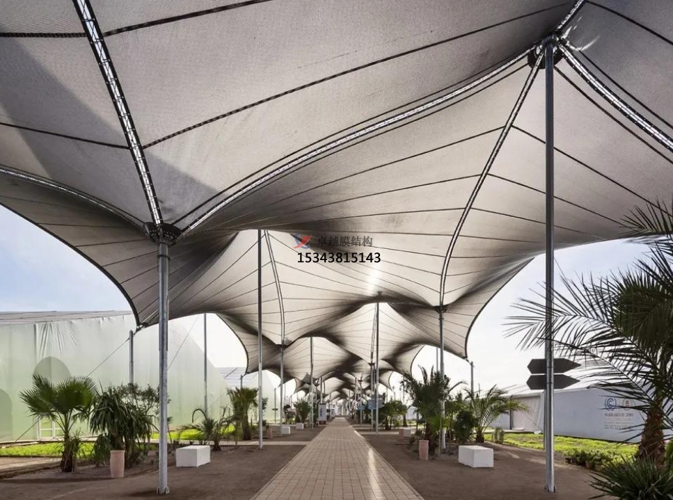 索膜結(jié)構(gòu),顧名思義,是由高強(qiáng)度柔性薄膜材料與其他材料(如鋼索、鋼結(jié)構(gòu)支柱等)共同作用而形成的一種穩(wěn)定的空間結(jié)構(gòu)形式。其最大的特點在于造型自由、輕巧、柔美,能夠創(chuàng)造出各種優(yōu)美的曲面造型,給人以強(qiáng)烈的視覺沖擊力。此外,索膜結(jié)構(gòu)還具有阻燃、制作簡易、安裝快捷、節(jié)能、易于維護(hù)以及使用安全等優(yōu)點,這些特點使得它在世界各地得到了廣泛的應(yīng)用。