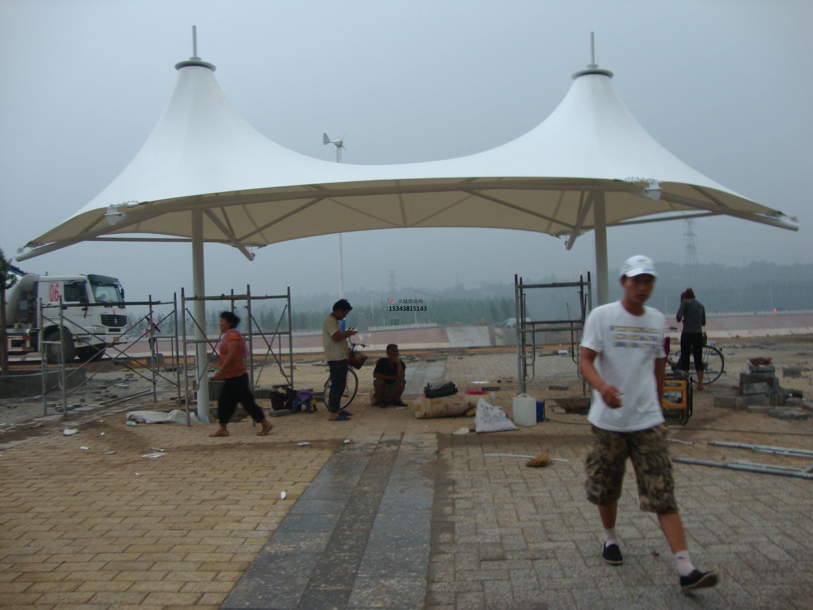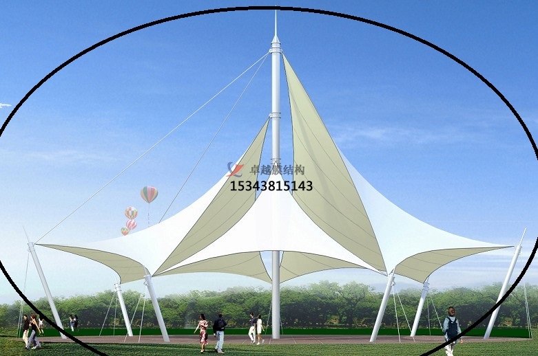 景觀園林膜結(jié)構(gòu)應(yīng)用場景:應(yīng)用場景有城市公共空間、生態(tài)與藝術(shù)重合、休閑與商業(yè)區(qū)域。城市公共空間,德國柏林花形展館采用充氣膜技術(shù),通過白色PVC膜模擬巨型花朵形態(tài),兼具遮陽、通風(fēng)及照明功能,模塊化設(shè)計可獨立或組合使用,成為會展公園的標志性景觀,上海世博軸陽光谷以喇叭花造型膜結(jié)構(gòu)為核心,結(jié)合鋼架與水波張拉膜,形成兼具剛?cè)崽匦缘某L景觀帶。生態(tài)與藝術(shù)融合,法國盧瓦爾河畔肖蒙國際花園節(jié)的紅色花形景觀膜,通過彩膜與陶罐系統(tǒng)結(jié)合,既節(jié)水又象征生態(tài)循環(huán),具有教育與警示意義。荷蘭Leidsche Rijn公交站采用牽?;ㄔ煨湍そY(jié)構(gòu),排列整齊的形態(tài)與法拉利TX30膜材結(jié)合,成為兼具功能性與地標性的城市設(shè)施。休閑與商業(yè)區(qū)域,景觀棚膜結(jié)構(gòu)廣泛應(yīng)用于步行街、公園綠地和景區(qū),提供遮陽避雨空間的同時,通過夜間燈光營造夢幻效果,增強商業(yè)吸引力。