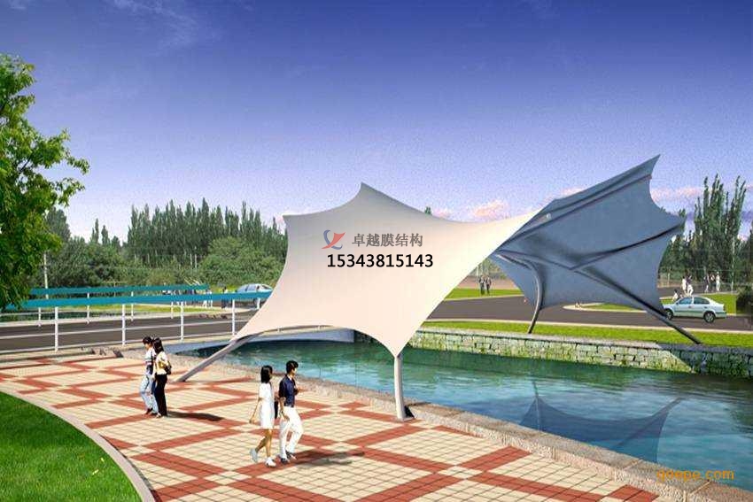 2、一個城市的中心區(qū)反映一個城市的地理風貌和民族風情,同時,也是一個城市文化發(fā)展程度的標志。而景觀設計要求其具有廣泛的可讀性、雅俗共賞,既有超凡脫俗的藝術價值,又能使大眾喜聞樂見與大眾息息相通。張拉膜以其輕盈飄逸的造型、柔美并帶有力量的曲線和大跨度和大空間的鮮明個性和標識性,應用于城市小品設計中。