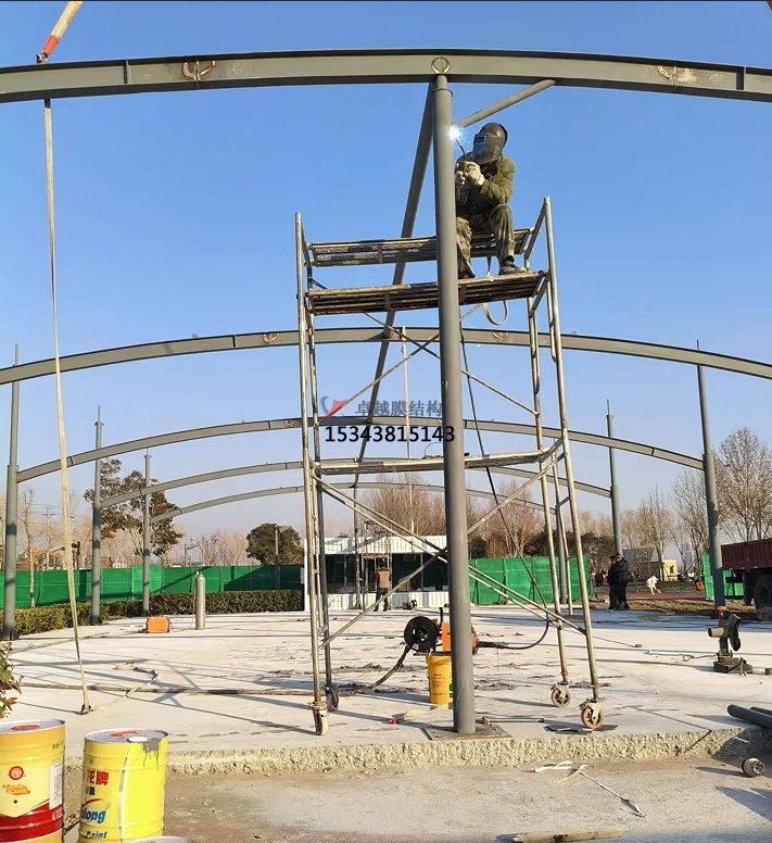 4?、耐用性和維護(hù)成本低?:膜結(jié)構(gòu)車棚使用高強(qiáng)度膜材料,具有極強(qiáng)的抗壓力和穩(wěn)定性,能夠遮擋風(fēng)雨,使用壽命可達(dá)50年左右。由于其質(zhì)量輕盈,維護(hù)成本也相對(duì)較低?。