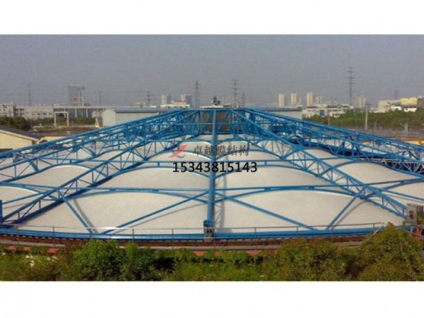 索膜結(jié)構(gòu)污水池結(jié)構(gòu)形式:其結(jié)構(gòu)形式有反吊膜結(jié)構(gòu)、懸索結(jié)構(gòu)和充氣膜結(jié)構(gòu)(無骨架式)三種。其中,反吊膜結(jié)構(gòu)的原理是以外部鋼構(gòu)為支撐骨架,將抗腐蝕性強的膜材(如氟碳纖維膜)反吊覆蓋于污水池上方,使膜材與腐蝕性氣體隔離,保護鋼構(gòu)不受侵蝕,適用于造紙廠、化工廠、市政污水處理廠等腐蝕性環(huán)境;懸索結(jié)構(gòu)的特點是利用柔性拉索調(diào)節(jié)膜面張力,無需內(nèi)部骨架,材料用量少且工期短,局限性是其僅適用于特定跨度的池體,靈活性較低;充氣膜結(jié)構(gòu)(無骨架式)的工作原理是通過內(nèi)部空氣壓力支撐膜面,形成大跨度無立柱空間,適用于超大池體(如200米以上跨度),優(yōu)勢是可增設門窗,便于設備檢修。