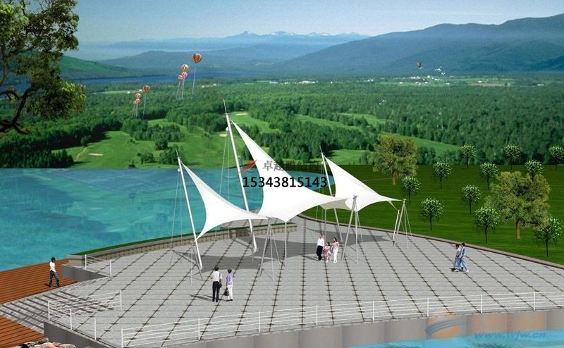 張拉膜景觀是一種建筑與結(jié)構(gòu)完美結(jié)合的結(jié)構(gòu)體系;它是用高強(qiáng)度柔性薄膜材料與支撐體系相結(jié)合形成具有一定剛度的穩(wěn)定曲面,能承受一定外荷載的空間結(jié)構(gòu)形式;這種結(jié)構(gòu)形式特別適用于大型體育場(chǎng)館、人口廊道、小品、公眾休閑娛樂(lè)廣場(chǎng)、展覽會(huì)場(chǎng)、購(gòu)物中心等領(lǐng)域。