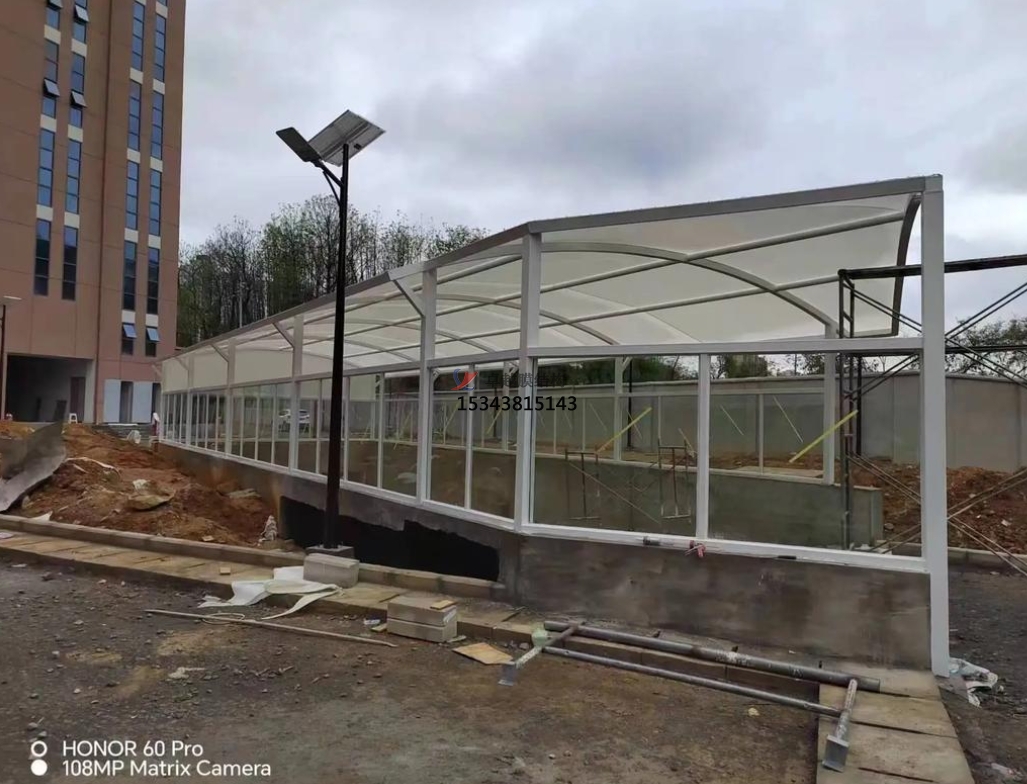 車庫入口膜結(jié)構(gòu)雨棚的設(shè)計(jì)過程中,通過合理使用鋁合金材料,可以使得整個(gè)結(jié)構(gòu)更加牢固可靠。