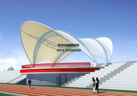 張拉膜看臺主要用于各類地方體育場主席臺雨棚,各類學(xué)校體育場看臺雨棚遮蓋,我公司是國內(nèi)較早從事大懸挑張拉膜結(jié)構(gòu)看臺設(shè)計施工的專業(yè)廠家,下面介紹一下我們在太原市周邊縣市完工的一些張拉膜看臺設(shè)計施工案例,我公司先后在太原周邊承接了太原學(xué)院張拉膜看臺雨棚、太原生態(tài)工程學(xué)校張拉膜看臺罩棚、濟源高級中學(xué)張拉膜看臺遮陽棚等設(shè)計施工項目,簡介如下: