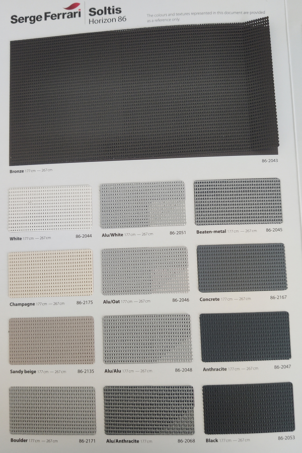 紗帝飾:紗帝飾面料為抵擋熱量和光線的真正盾牌,依靠其微型通風(fēng)結(jié)構(gòu),調(diào)節(jié)陽光的熱效應(yīng),有效地防眩目。紗帝飾面料具有46種顏色,可為所有建筑,無論是 公眾場合還是私人住宅提供配套的眾多色彩和多種用途。法拉利預(yù)應(yīng)力專利制造技術(shù)給紗帝飾織物帶來尺寸恒定,不會變形,無需加固自然抗撕拉,耐久和抗塵,占 地面積小等獨(dú)有特性,更顯出紗帝飾面料對建筑物技術(shù)性遮陽無可匹敵的優(yōu)勢。