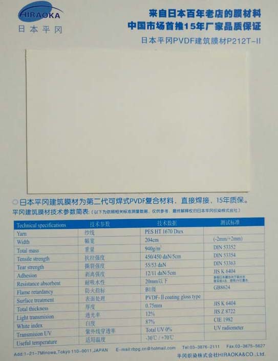 日本平岡建筑膜材中國市場(chǎng)很好的推系列: